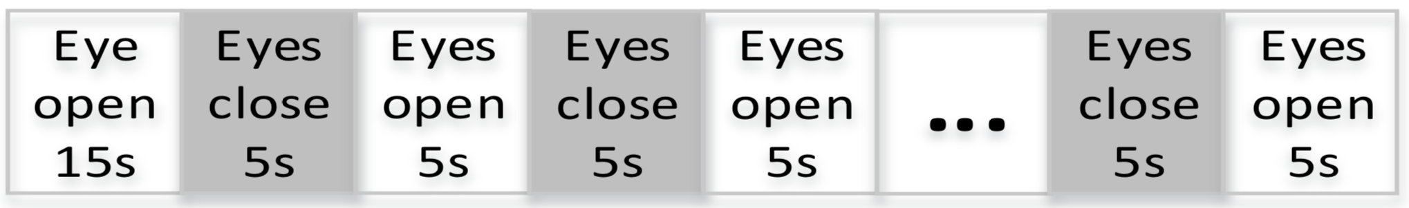- Phase 2: Alternates between eyes closed for 5s and eyes open for 5s per trial.