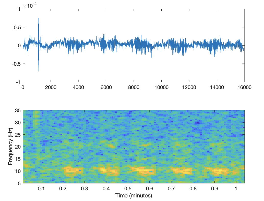 subplot(2,1,2), plot_spectrogram(sig, start, 1, gca)